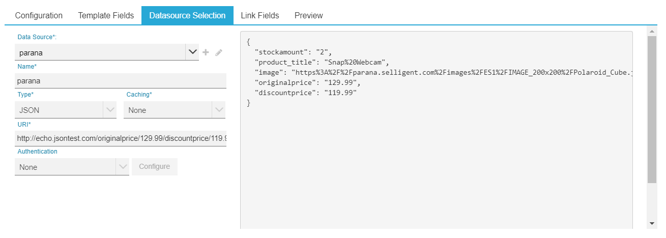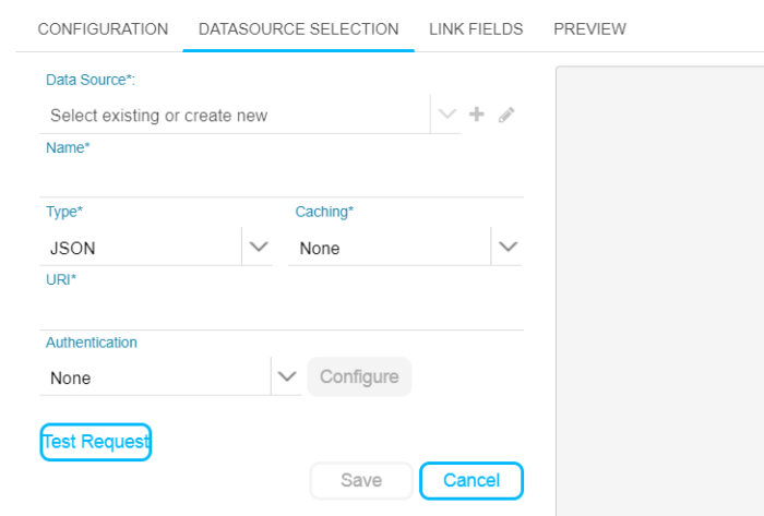 Use the Test request button to test the actual API request and show the result of the call on the right. The test must be successful in order to save the data source, so this is a mandatory step.