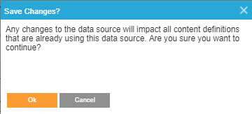 IMPORTANT NOTE: When changes are made to the data source, all content definitions using this data source will be impacted.