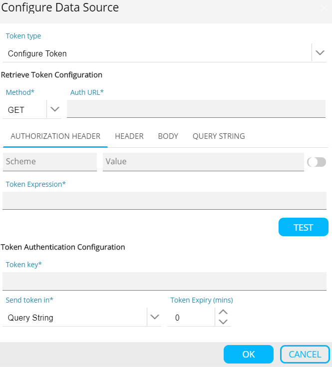 - Token expiry — Specify the expiration time, expressed in minutes with a maximum of 14 hours. Make sure this is an accurate value, because it will be used while caching the token value.