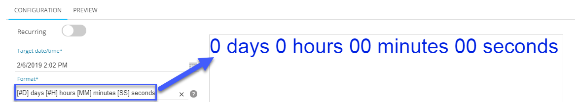 of fields for the days, hours, minutes and/