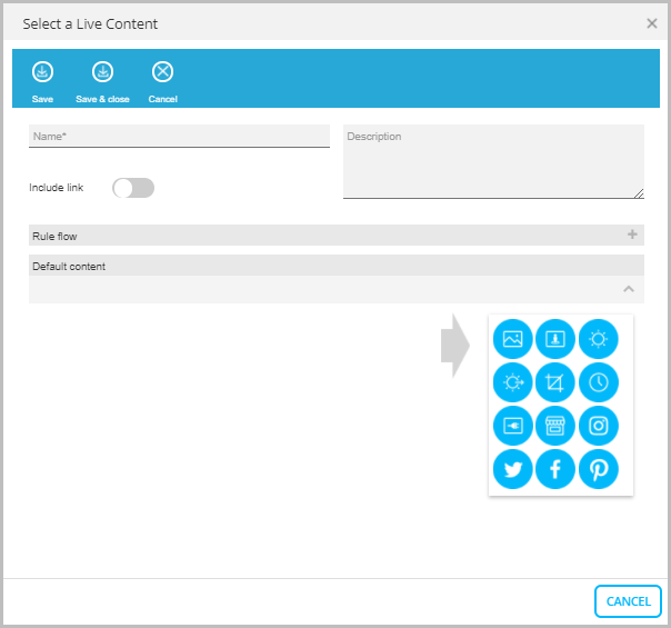 10. Click the corresponding Live Content icon to edit or define the content for the selected type and configure