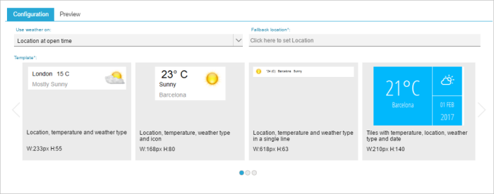 - Use Weather on — Choose the location to use for the weather data: