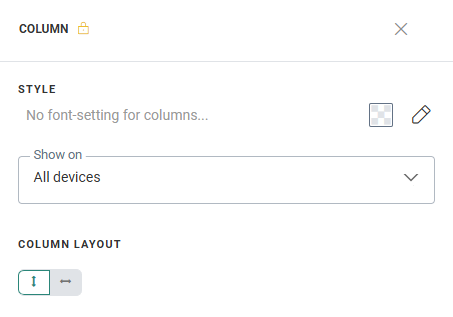 You can set styling options for the content and define on which devices the column content should be displayed. For multiple horizontal aligned content components in the column, you can set how they should be displayed on mobile devices: horizontally - one next to the other, or vertically - one below the other.