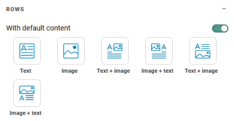 Enabled — When the option is enabled, you can drag-and-drop rows that contain default content such as image and text containers onto the canvas. These rows consist of one or two columns depending on the type of content selected. Use this option if you want to quickly create content that takes up the entire row.