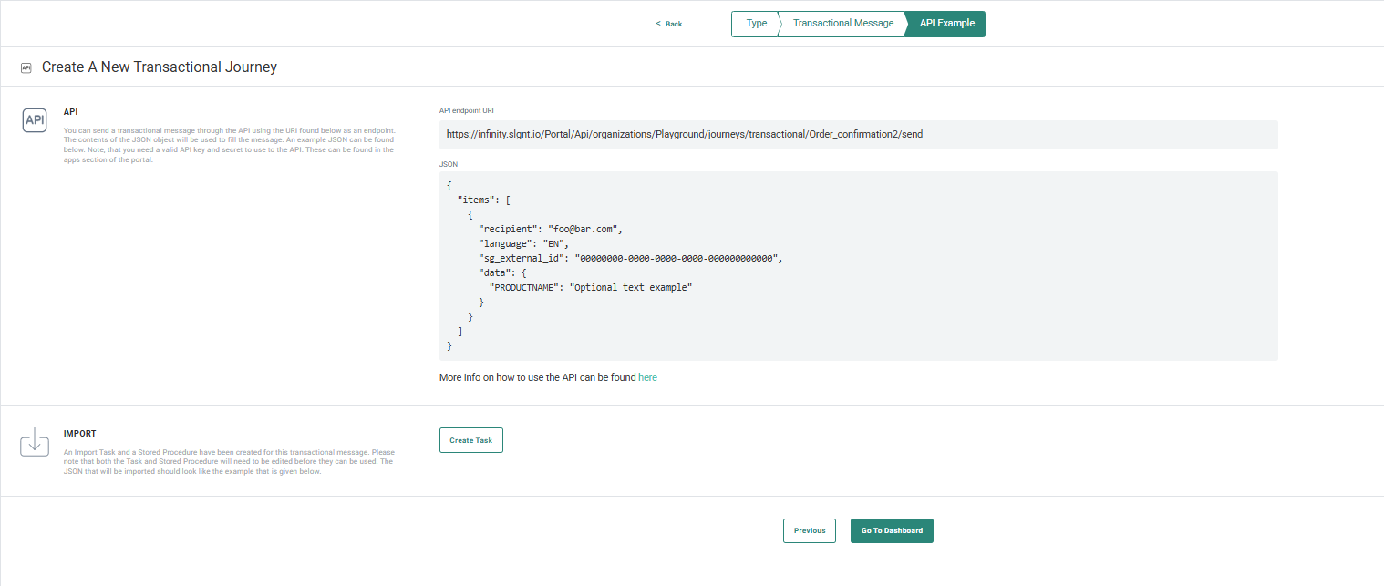 Note: Transactional Journeys can also be created from the Journey entry. Check out this topic for more information.