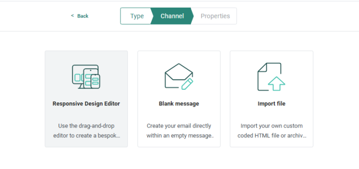 - Blank Message — Displays the content HTML code that can be modified by typing HTML code directly in the source or using the same drag-and-drop components used in Design Editor.