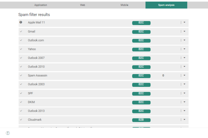 The analysis provides a series of elements to consider: is the text credible? are there strange words? words to avoid? are URLs valid? etc... Check your email at least for these elements, correct and run the test again.