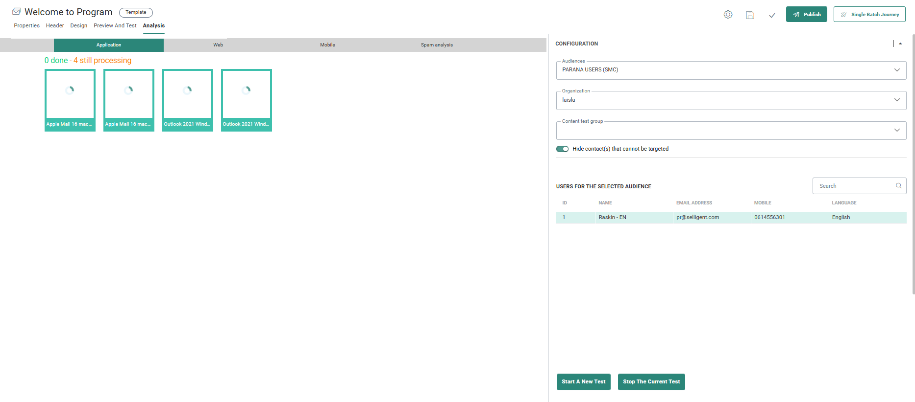 Click Start a new test. This might take up some time. While the process is running an indication is provided on how many previews are completed or still in analysis.