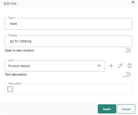 4. Next, you can choose to change the color of the link to make it stand out in the text. If you want to do this, activate the option 'Text decoration' and select the color.
