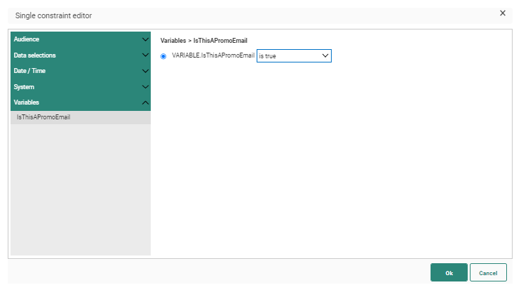 the constraint. In the example below, the variable must be equal to "true"