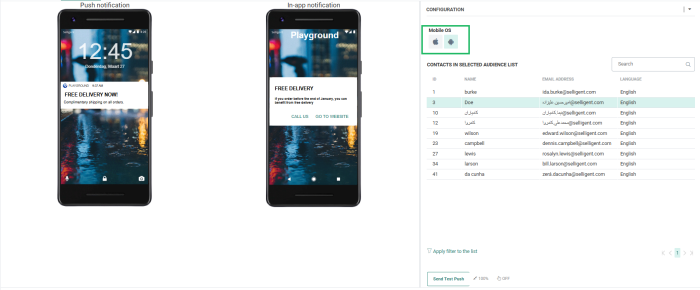 When iOS only is set as device type filter in the mobile message properties, only the iOS icon is enabled as mobile OS on the Preview And Test screen.