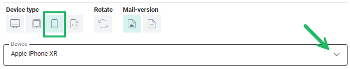 Use the Device type icons on the right to select the device type for which the preview must be shown: desktop, tablet or mobile.