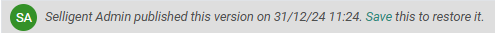icon in the History overview to restore a previous version. A message is displayed showing details of the person who published it and when.