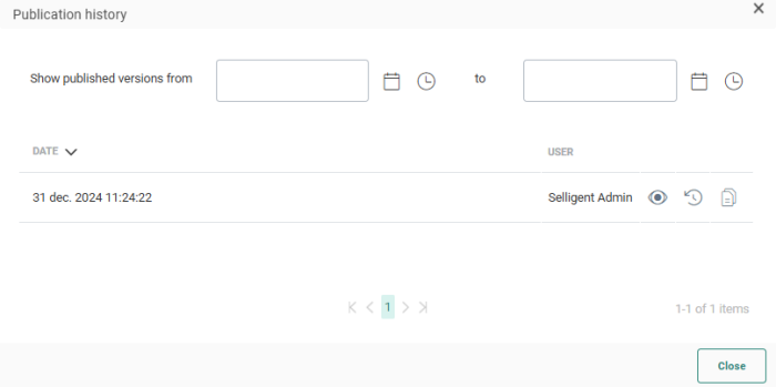 A list is displayed of every publish and the person who performed this action. A preview of the version is available using the eye icon.