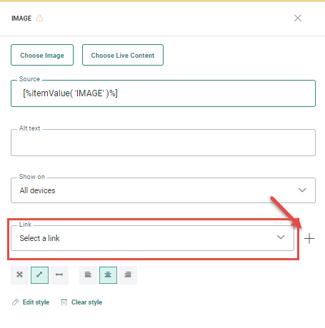 So first, go to the image properties (by clicking the Image component added earlier to the layout).