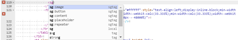 Note: Double-clicking the SG tags in the source displays the properties panel on the right and allows editing the content.