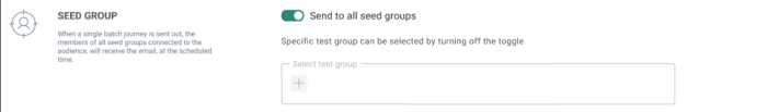 To send the communication to all Seed Groups linked to the journey audience, activate the option Send to all Seed Groups.