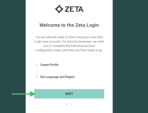 Click Next. The platform logs you into the Zeta Login User Workspace. For more information, please see Zeta Login User Workspace.