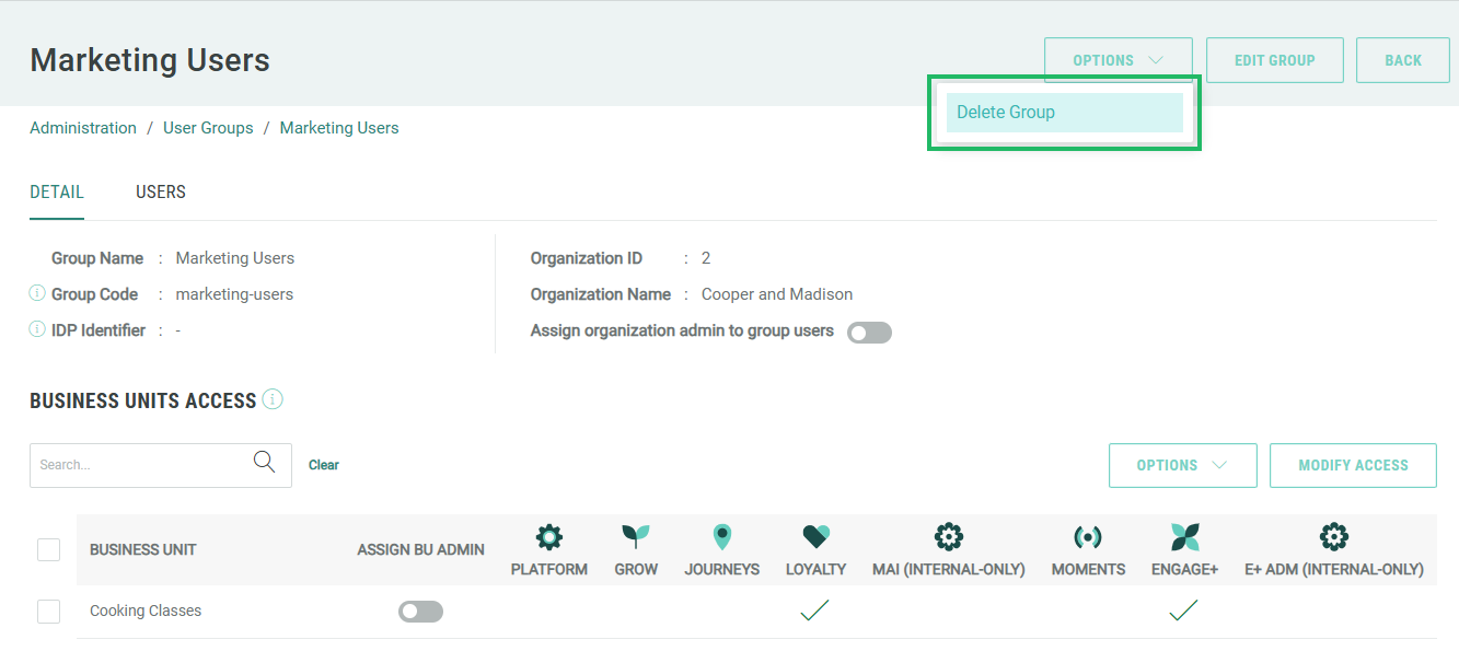 The platform allows you to delete a User Group from two different places: