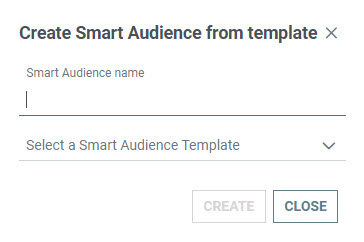 In the pop-up that appears to create a Smart Audience from a template, enter a Smart Audience name and select an existing Smart Audience template from the drop-down. Then click the Create button.