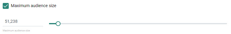 - When set to a fixed maximum audience size, Smart Audience resizes the number of contacts that match the filters and past interactions (visited the website, purchased products).
