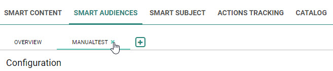 Note: You can switch any time between the Smart Audiences overview and any opened Smart Audience configuration by clicking on the corresponding tab (the active one shows a blue line underneath).