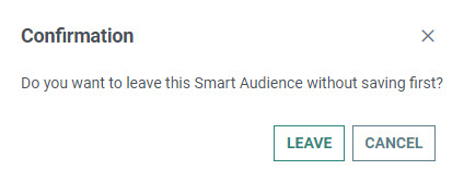 When there are unsaved changes when leaving a Smart Audience configuration (for example by switching to another tab), a dialog window appears to warn the user.