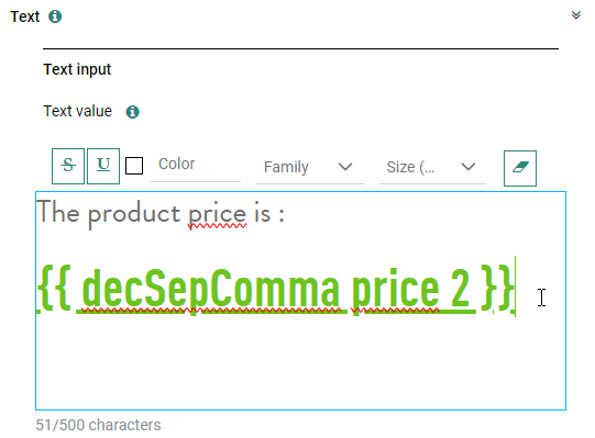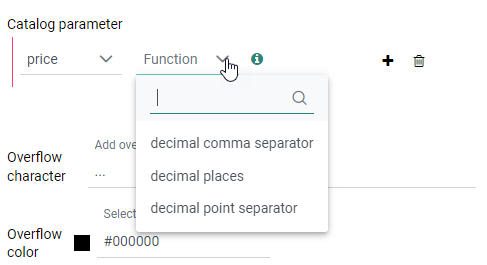 Note: When the 'price' catalog field is selected, the value also receives its currency symbol in front of the number.