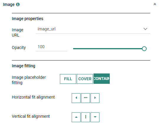 Depending on your selection, the settings below appear.- Catalog image — This is a placeholder to define the location and size of the catalog image that will be generated by Smart Content. The image URL needs to be selected from the image settings.