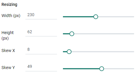 - Resizing — The width and height of the object can be resized by dragging the sliders or entering values manually. These values are in pixels, and can be anything between 0 and 500.