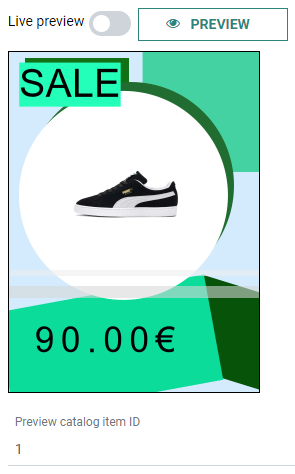 Instead of the default catalog item that's being rendered in the preview (the one with the lowest ID), you can also preview specific catalog items, by entering the catalog item ID in the field under the preview.