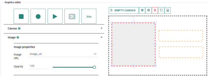 Clone object — Select an object from the canvas and click this button to create an exact copy of the selected object. (the button is grayed out when no object is selected)Note: It's not possible to clone an object when multiple objects are currently selected or when a 'group' object is used.