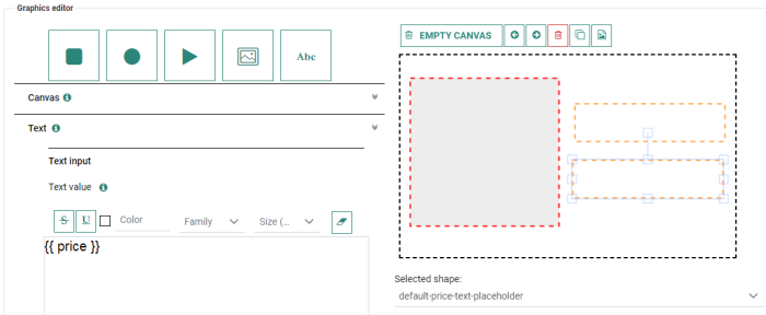 - a catalog text on the bottom-right, with the 'price' value (from the product catalog) selected by default