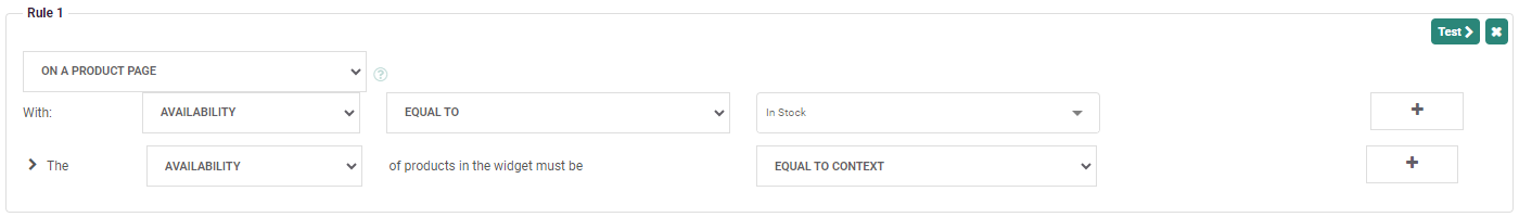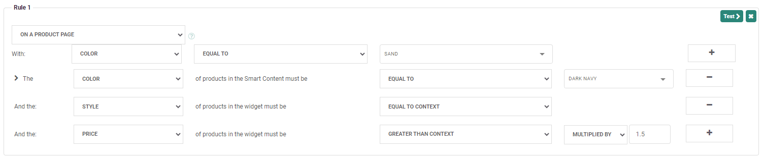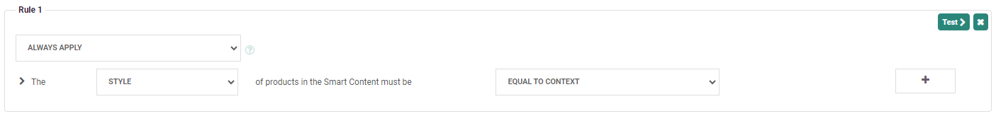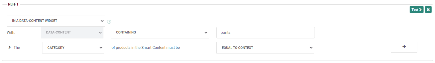 If the Smart Content is displayed on a product page, the conditions you set will define the cases in which the filter is activated.
