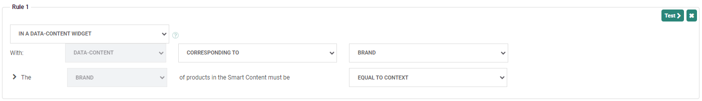 It allows you to directly specify the type of data that's sent to the Smart Content, instead of specifying a value to match as described above. The rule in the screenshot above means "the data sent inside the data-content parameter corresponds to a brand". If it matches a brand value found in the catalog, only choose products whose 'Brand' parameter have the same value. If it doesn't match anything, or if data-content is empty, do not display any products.