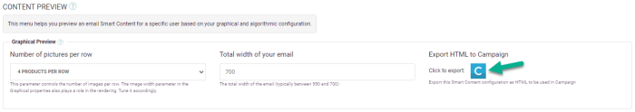 If you are using the Campaign (Windows) client, you can use the following button to copy-paste the HTML code displayed in the "Content preview" section of your Smart Content.
