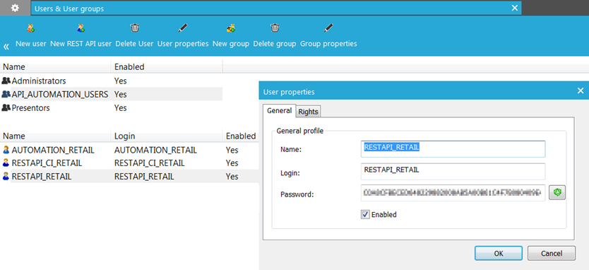 In Campaign, under ‘Settings, Users & User groups’, create a new REST API user. Enter the name and login name. A password is generated.