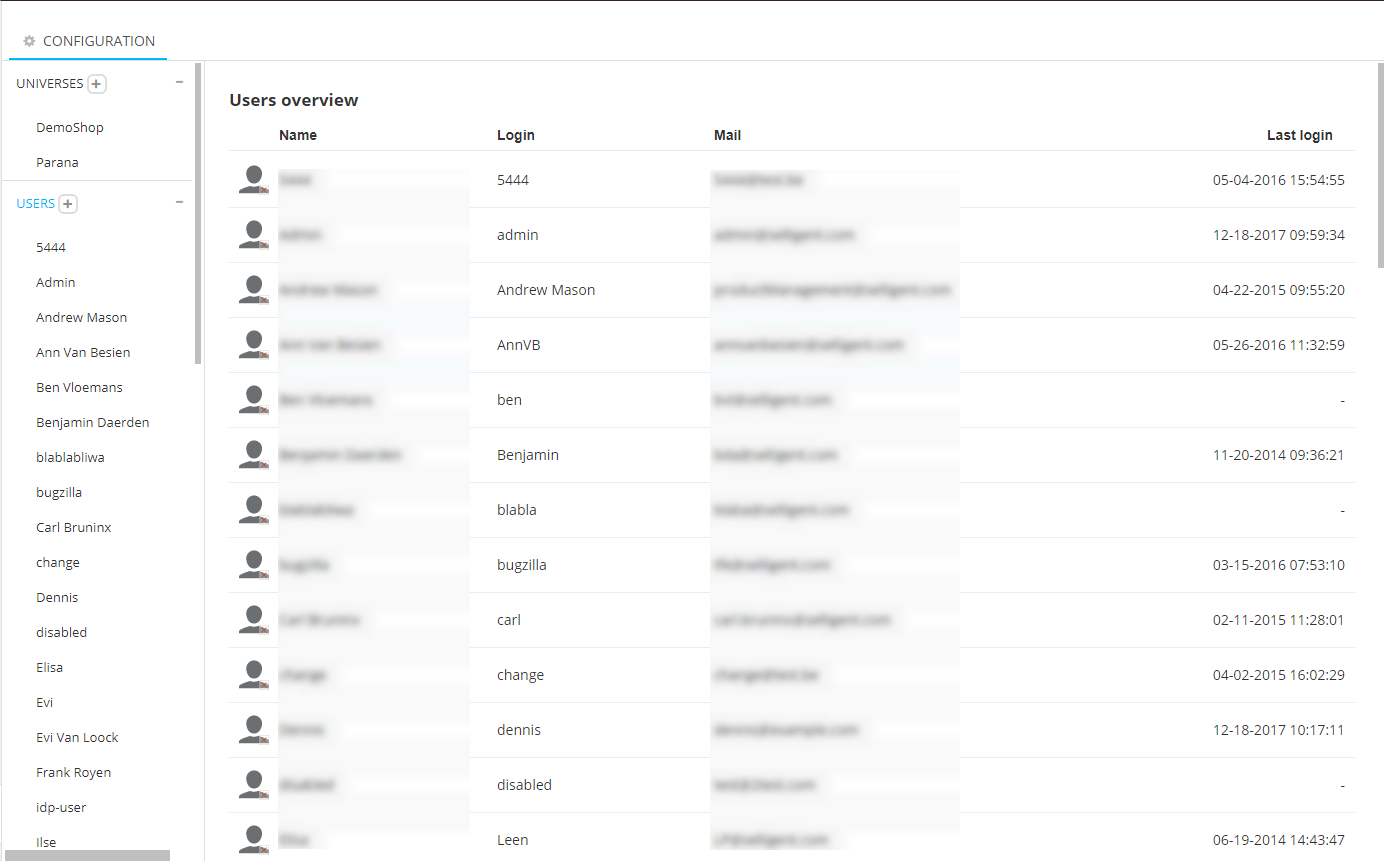- The User rights section will still be accessible and configurable in the Site module via the Configuration chapter until the User rights for a specific user are updated in Selligent. At this moment, the rights will disappear in Sitefor this specific user.