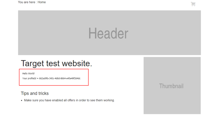 Example web page with profileId parameter value from Selligent targeting journey :![]()