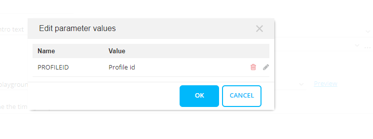 - Additional custom parameters can be added (eg. PROFILEID).
