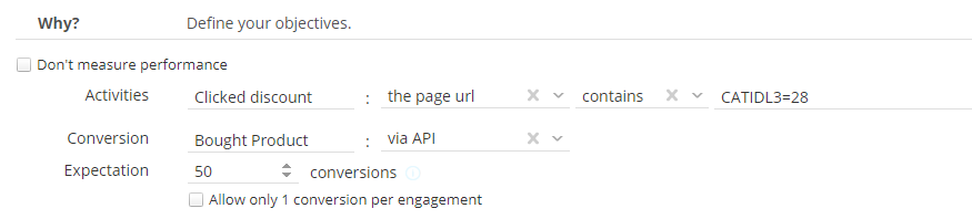Now we know the conversion is measured, we can define the objectives: