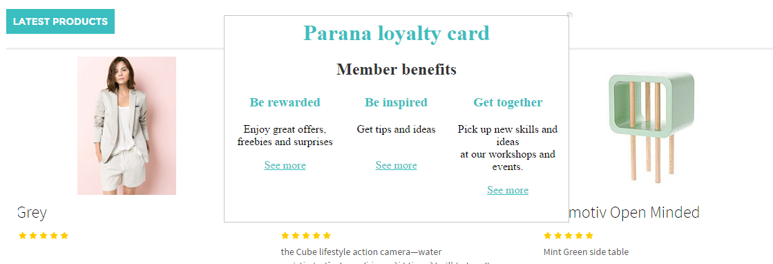 The "Loyalty card benefits" Journey is used as CRM content for the popin