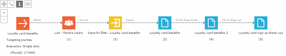On the Journey page "loyalty card benefits" add a function that tracks the click for the offer. The function is executed when the visitor clicks the see more link. Next, the function redirects to the next "Cocoon ok" page.