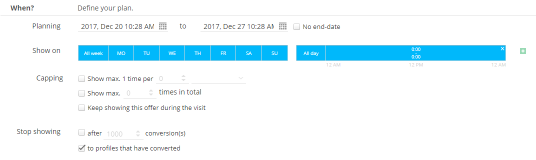 This offer can run forever. We will stop showing it to profiles that have converted.