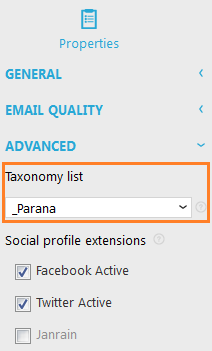 Once a taxonomy tag list is created it can be linked to the audience list. This will generate the taxonomy profile extension with scope name SYS_PROFILE. This example uses the social posts done from Campaign, stored in the field SOCIAL_POSTS int he taxonomy profile extension.