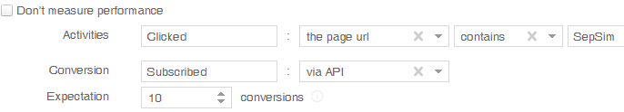 - Activity "Clicked". This is the digital subscribe page url. This url will also be used in as the link in the html content we will define in the next step. If someone clicks the html link, Site will have a hit on this offer, and the activity is measured.