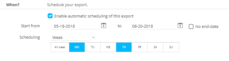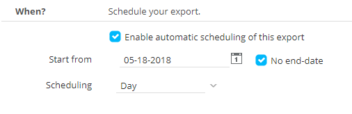 By default no automatic export is scheduled. Tick the check box to activate the schedule and define the planning: