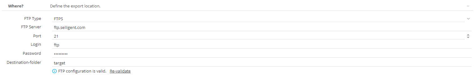 - Destination folder: the existing folder on the ftp server in which the file will be exported
