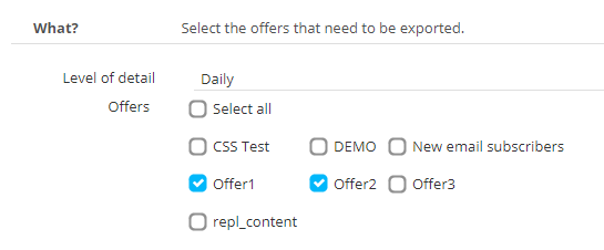 You can also choose the level of detail to determine the timeframe for which the offers need to be exported.![]()