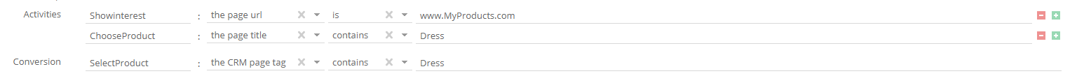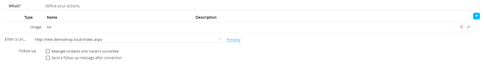 In this aspect; it’s also no use creating an activity that is the same as your conversion goal. Because once he’s converted a follow-up message will be sent, so your activity for retargeting will be passed by, we are already in the final step of the funnel.